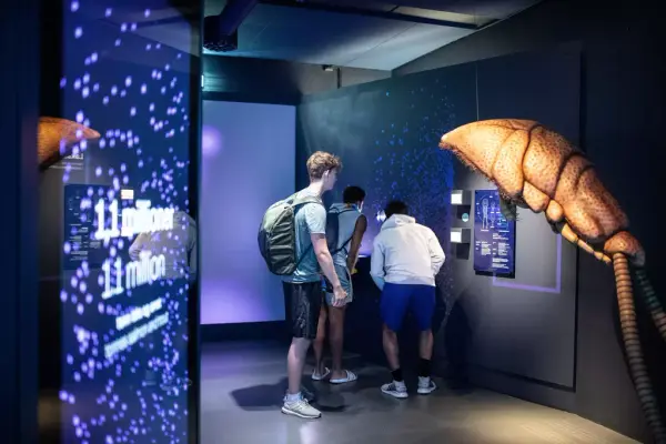 Besøke et havbruksanlegg? Det er mulig å kombinere et besøk i utstillingen på Storeblå med RIB-tur til et havbruksanlegg. Fra 14 år og oppover.